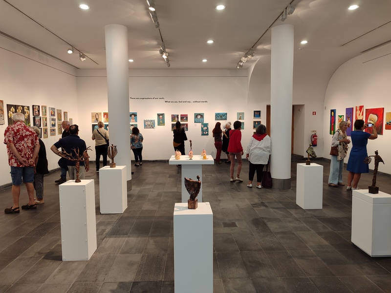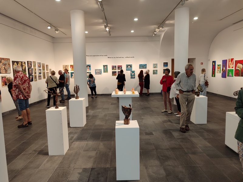 No passado dia 5, pelas 18h, foi aberta, na nossa Sala de Exposições, a Coletiva “Expressions”, com obras de seis artistas de diversas origens e trajetórias criativas distintas, que têm a ilha do Faial em comum. Por suas mãos, olhares e sentimentos, em seus trabalhos podemos apreciar as vivências pessoais de cada um, em diversas técnicas: pintura, colagem, técnica mista e escultura. Agradecemos a Alexandra MacKenzie , Maria do Céu Brito, Natascha Kiowsky, Ruaan Viljoen, Thurid Klante e Tricia Walters e a todos os que nos prestigiaram nesse agradável momento de convívio.